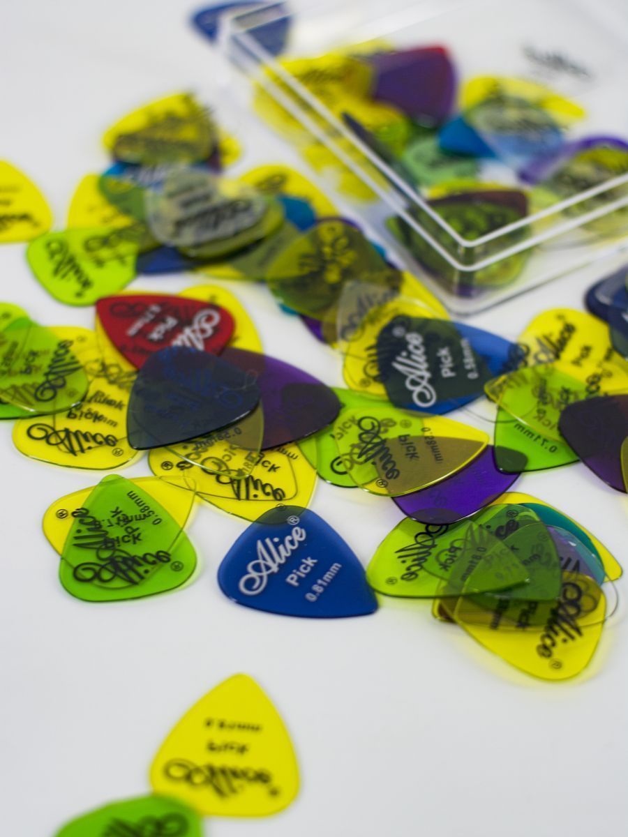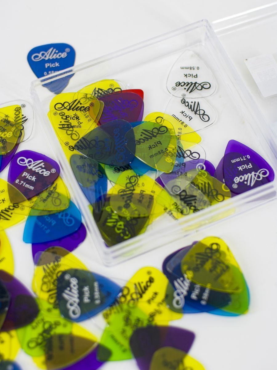 Материал: нейлон Количество медиаторов: 100 шт Толщина: 0,58-0,81 мм Цвет: разноцветные