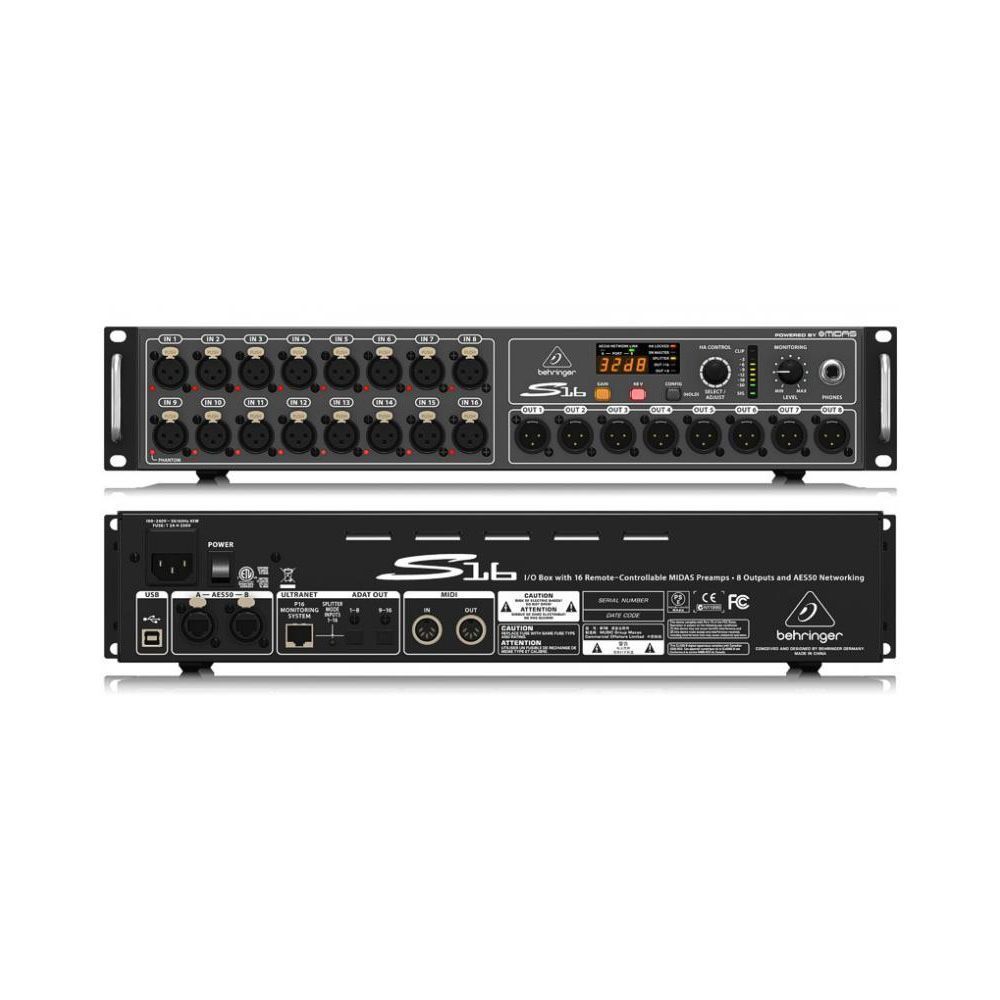 Behringer S16 Стейдж-бокс, 16 мик/лин входов, 8 лин выходов XLR, 2 x AES50, ULTRANET, 2 x ADAT, 2U