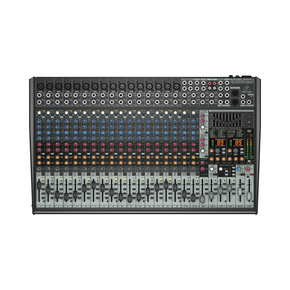 Универсальный малошумящий микшерный пульт (16 моновходов, 2 основных и 2 дополнительных стереовхода, 4 AUX-шины, 4 подгруппы, 2 процессора эффектов, выходной эквалайзер, встроенный импульсный блок питания). - 16 микрофонных предусилителей XENYX сопоставимы по качеству звука с элитными внешними микрофонными предусилителями - Неоклассический "британский" трёхполосный эквалайзер с полупараметрической серединой для тёплого и мелодичного звука - Два 24-битных стереофонических эффект-процессора студийного класса, предлагающих 100 великолепных пресетов, в т.ч. реверберация, хорус, фленджер, задержка, корректор высоты тона, а также различные мультиэффекты - Высокоточный 9-ти полосный графический стерео эквалайзер позволяет произвести точную корректировку частот мониторного или главного микширования - Революционная система обнаружения обратной связи FBQ немедленно снижает уровень критической перегрузки