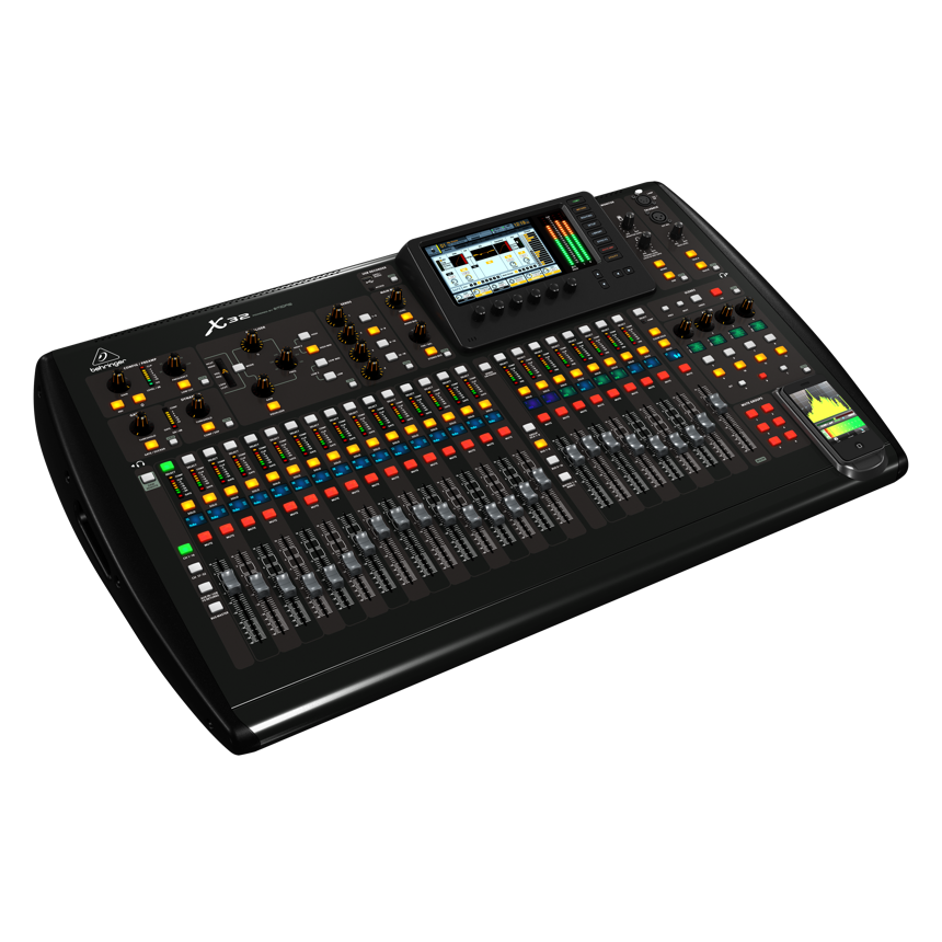 Behringer X32 Пульт микшерный цифровой, 32 канала, 16 подгрупп, шесть посылов, восемь стереовозвратов, процессор эффектов, встроенный рекордер, моторизованные фейдеры, цветной жидкокристаллический дисплей.
