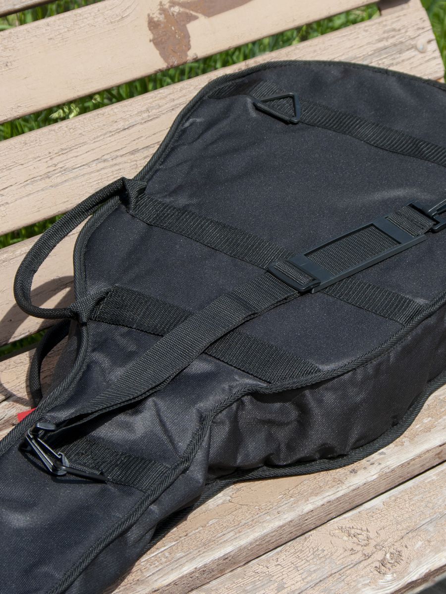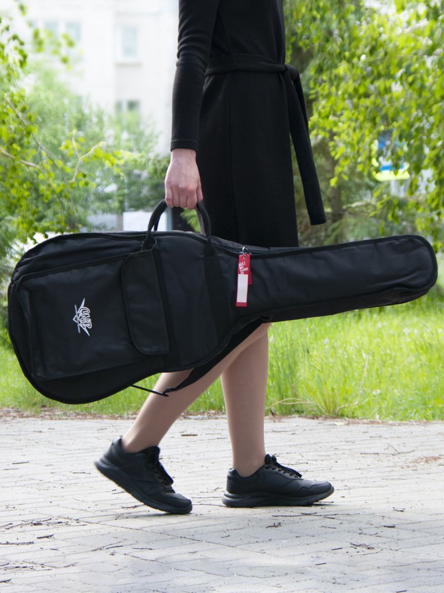 CNB CB400 3/4 – это стильный и качественный чехол для классической гитары 3/4. Главное назначение модели – оберегать инструмент от внешних воздействий окружающей среды, которые негативно сказываются как на внешнем виде гитары, так и на ее звучании. Чехол изготовлен из водонепроницаемого нейлона с плотностью 600 D. Защитное уплотнение толщиной 7 мм предотвращает появление царапин и потертостей на инструменте. Чехол закрывается на прочную молнию с крепкими зипперами. Модель имеет большой наружный карман для хранения нот и гитарных аксессуаров. Заплечный ремень позволяет с удобством переносить гитару за спиной. Для транспортировки инструмента в горизонтальном положении имеются две прочные боковые ручки. Модель CNB CB400 3/4 выполнена в черном цвете, однако классический дизайн прекрасно дополняет логотип компании, расположенный на кармане. Чехол CNB CB400 3/4 создан не только для надежной защиты инструмента, но и для вашего комфорта.