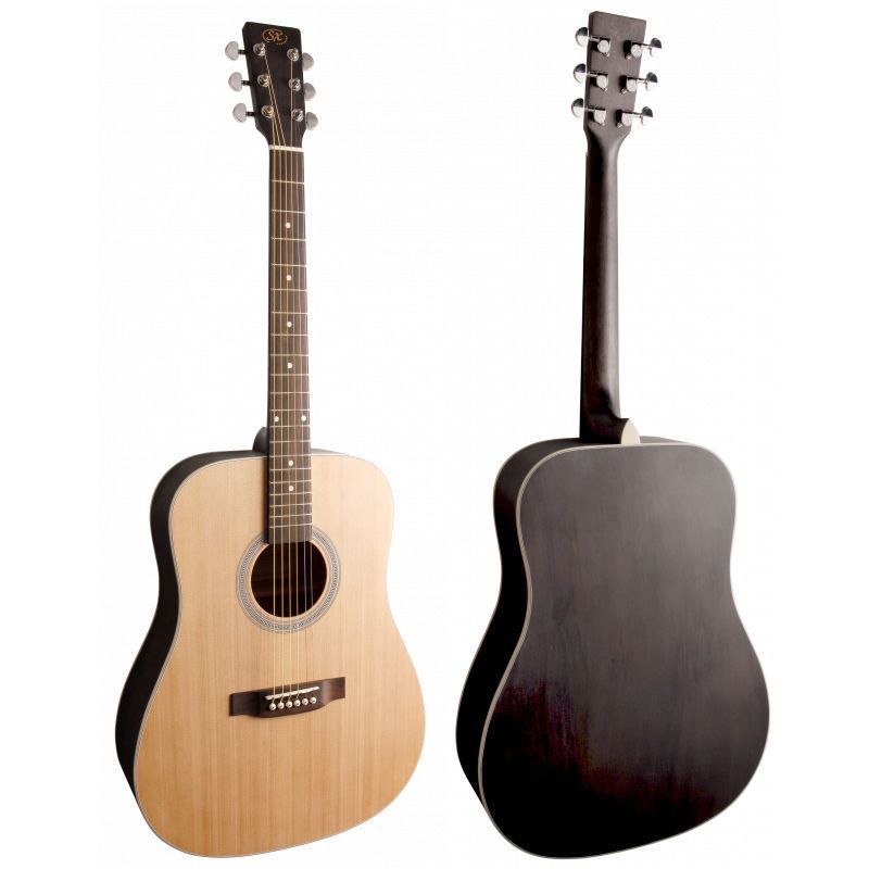 SX SD204TBK Гитара акустическая, верхняя дека ель, нижняя дека и обечайка: агатис, гриф: габон, накладка грифа и нижний порожек: палисандр, колки: хромированное покрытие, цвет Trans Black